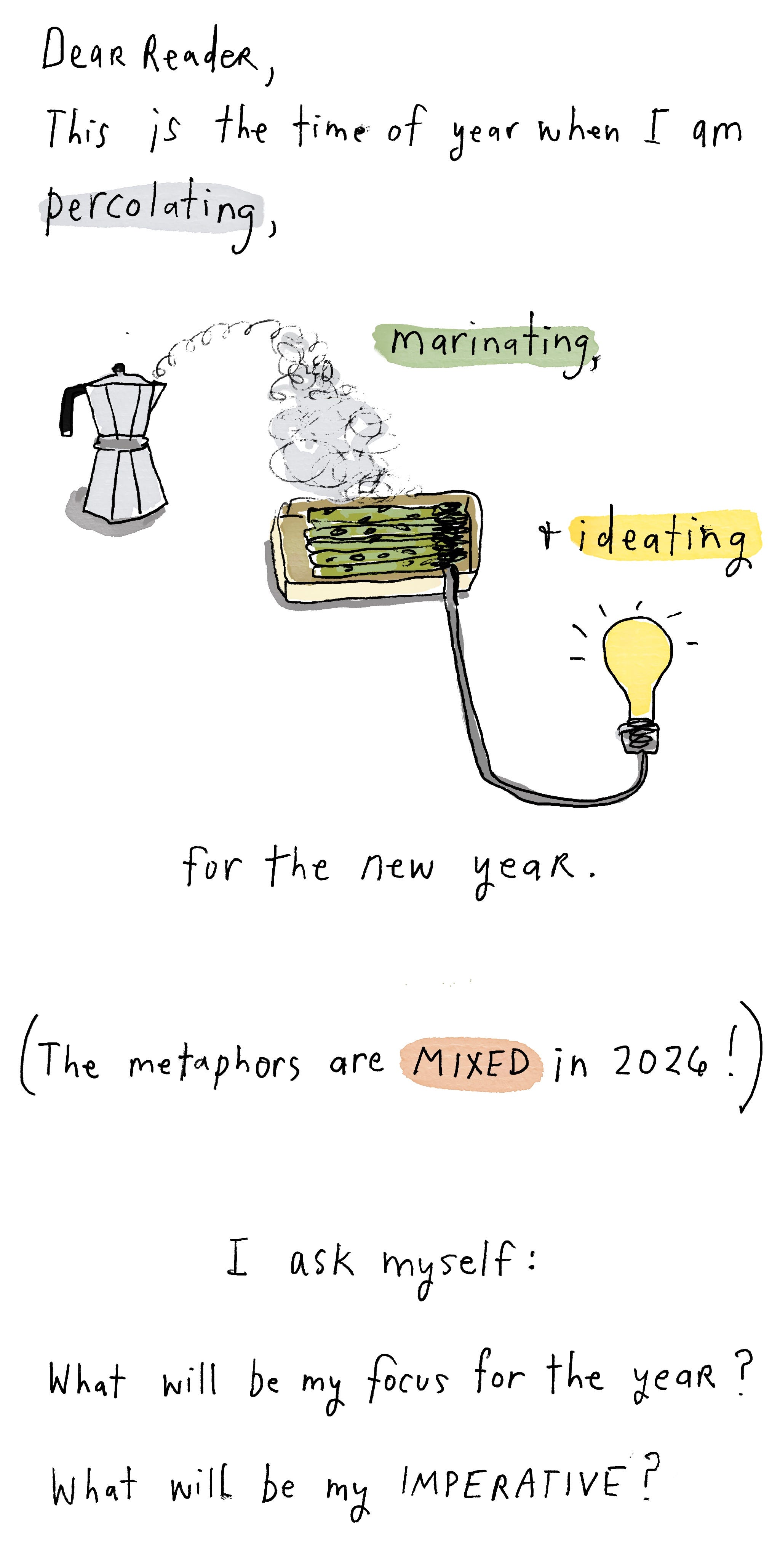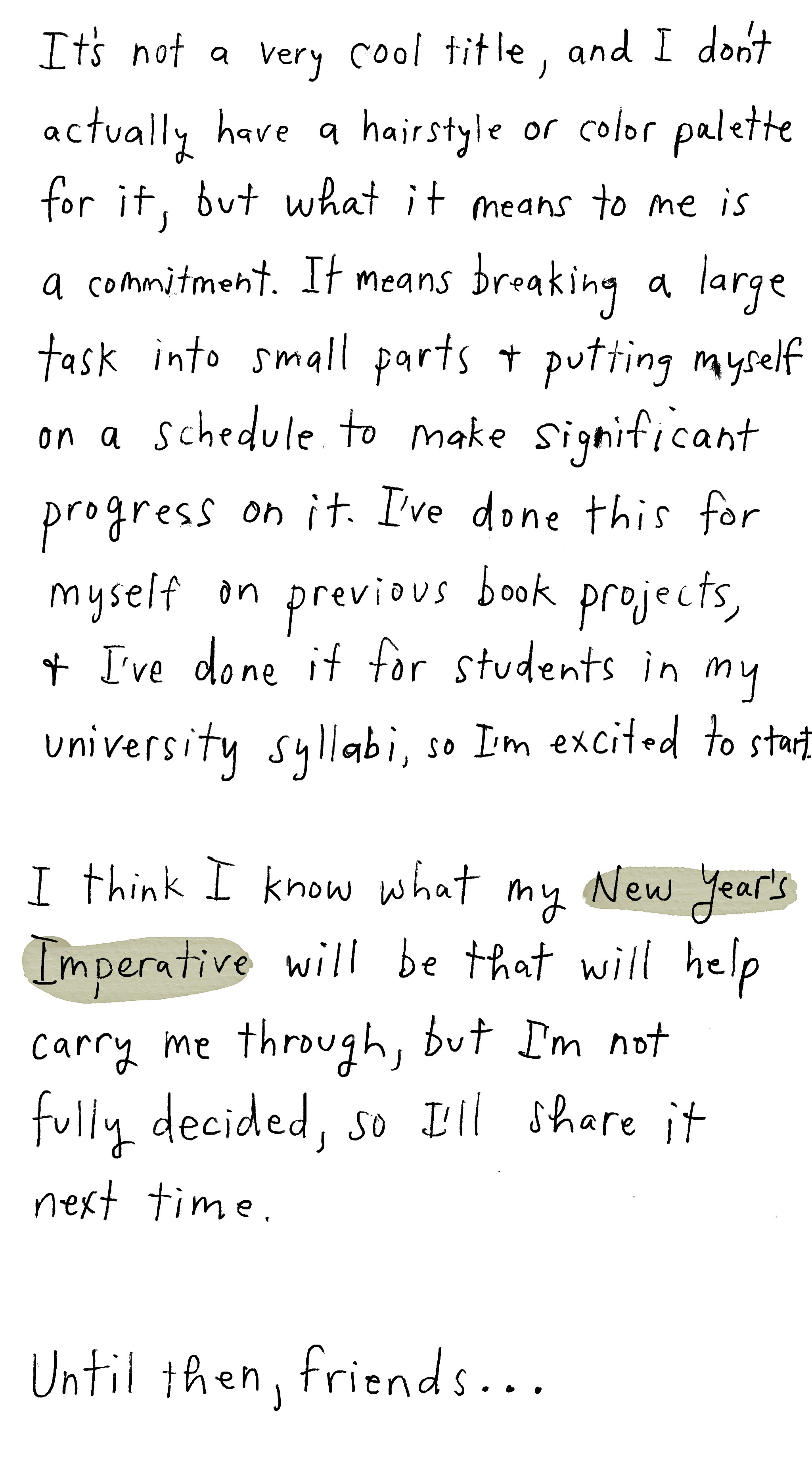 Here’s my post from last year about choosing a New Year’s Imperative: “Forget resolutions and words of the year. Choose a New Year’s Imperative instead.”