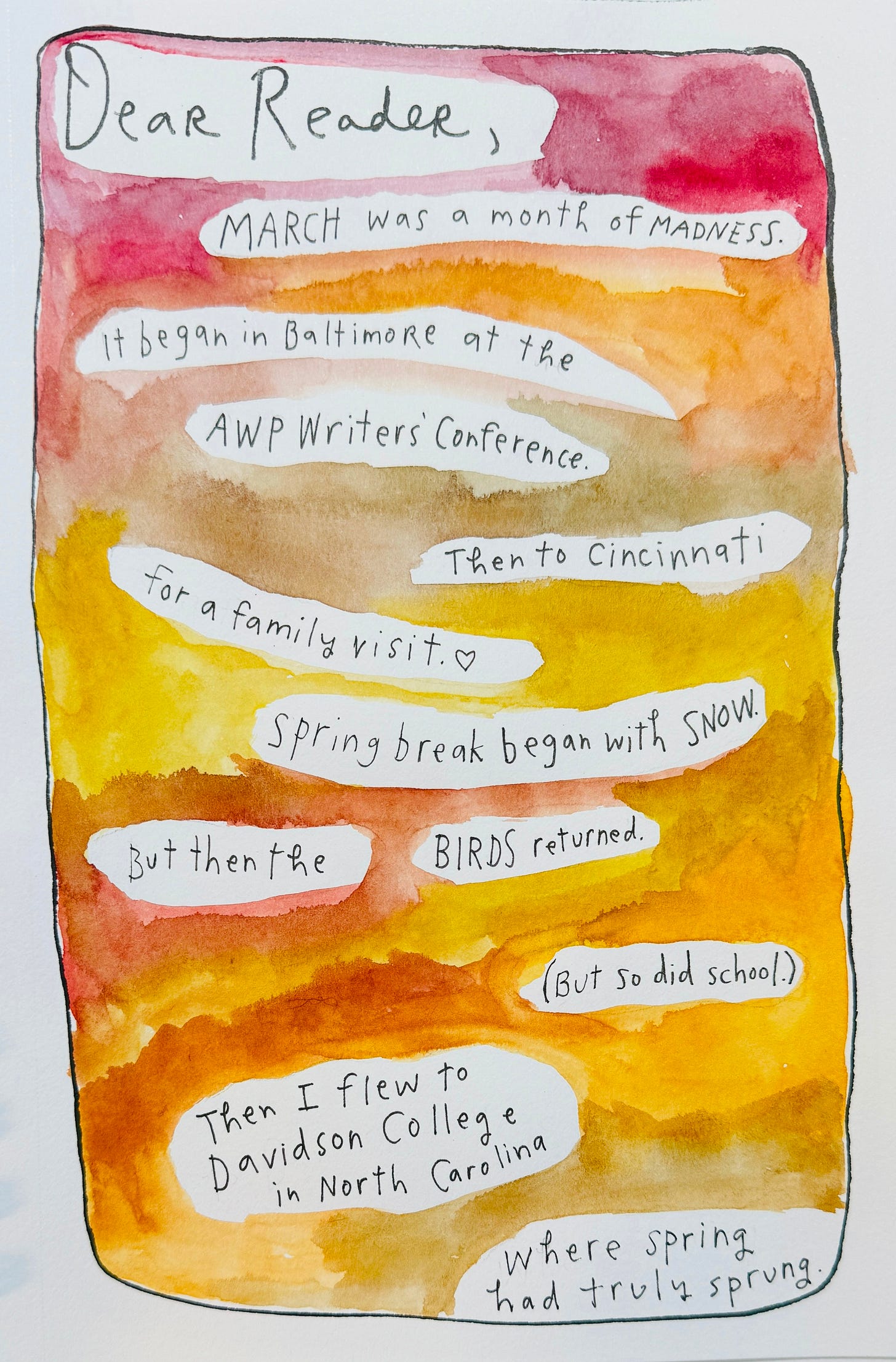 Thanks for reading The Habit of Art by Kelcey Ervick, a Substack Featured Publication (twice!). I love writing and drawing these posts and am grateful to everyone who follows along. I’m the author of four award-winning books, including the graphic memoir The Keeper, which Alison Bechdel called “a triumph!” (her exclamation point). I’m a professor of creative writing in Indiana, and I live on the banks of the St. Joseph River, which has just washed away some goose eggs. :(