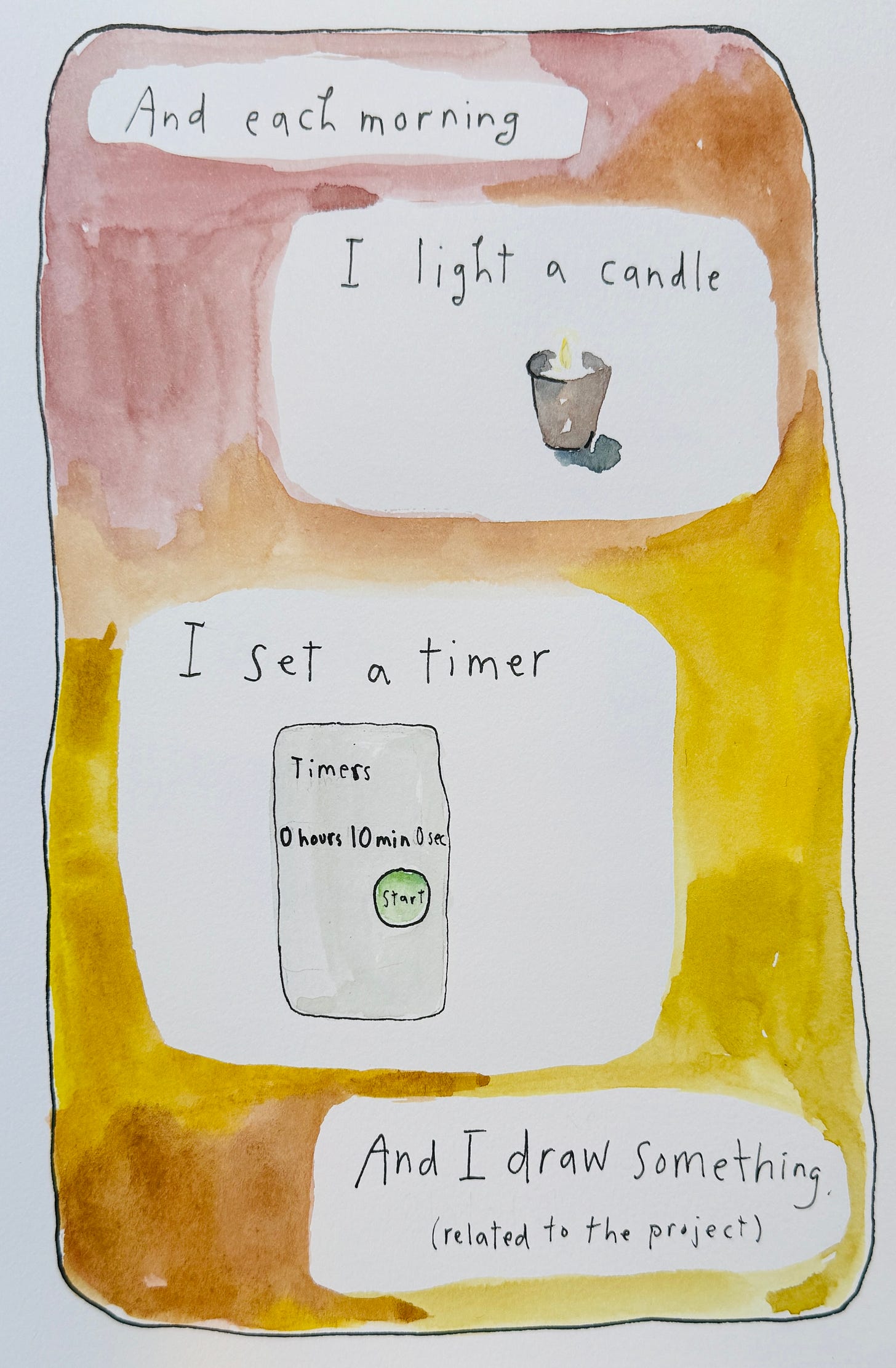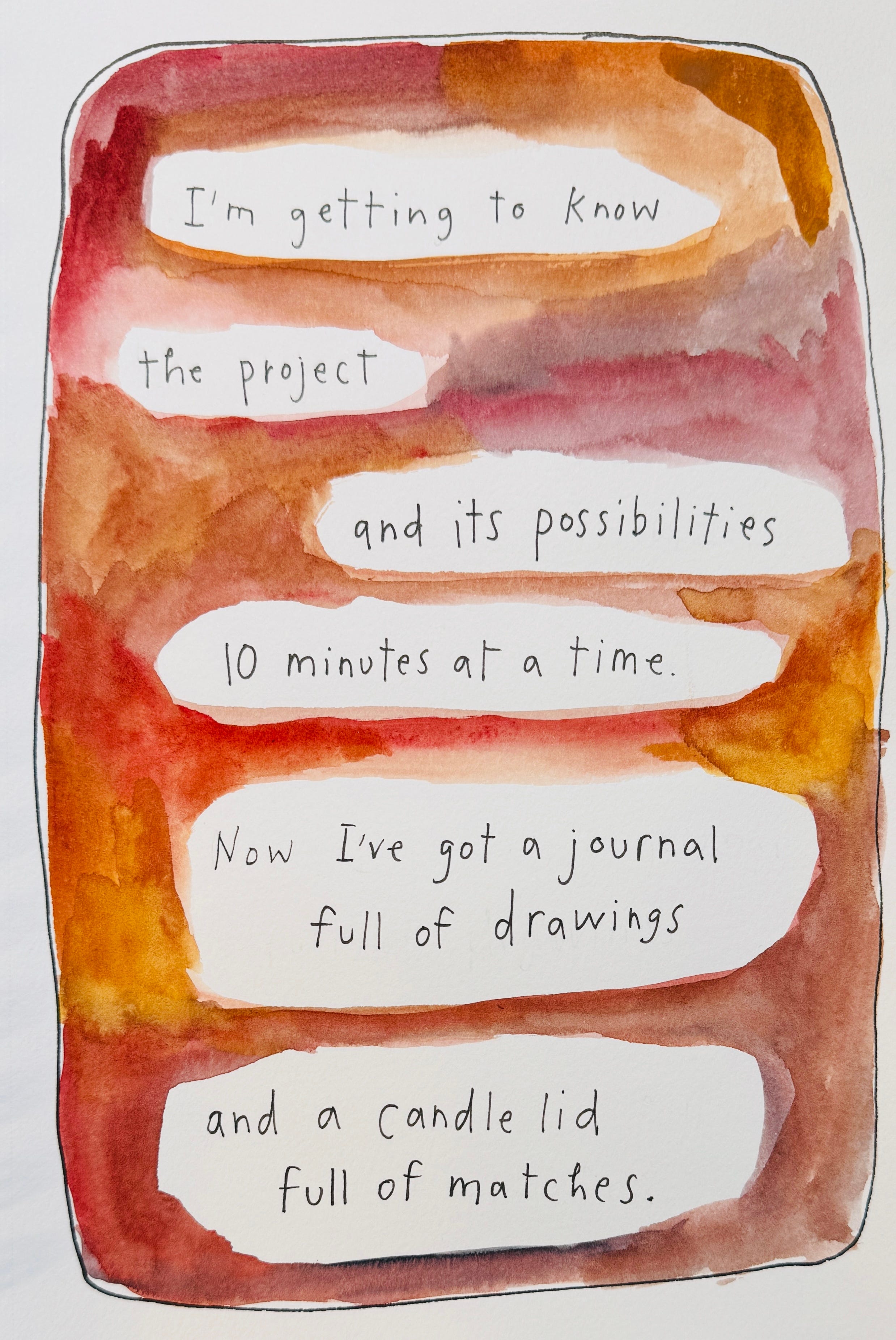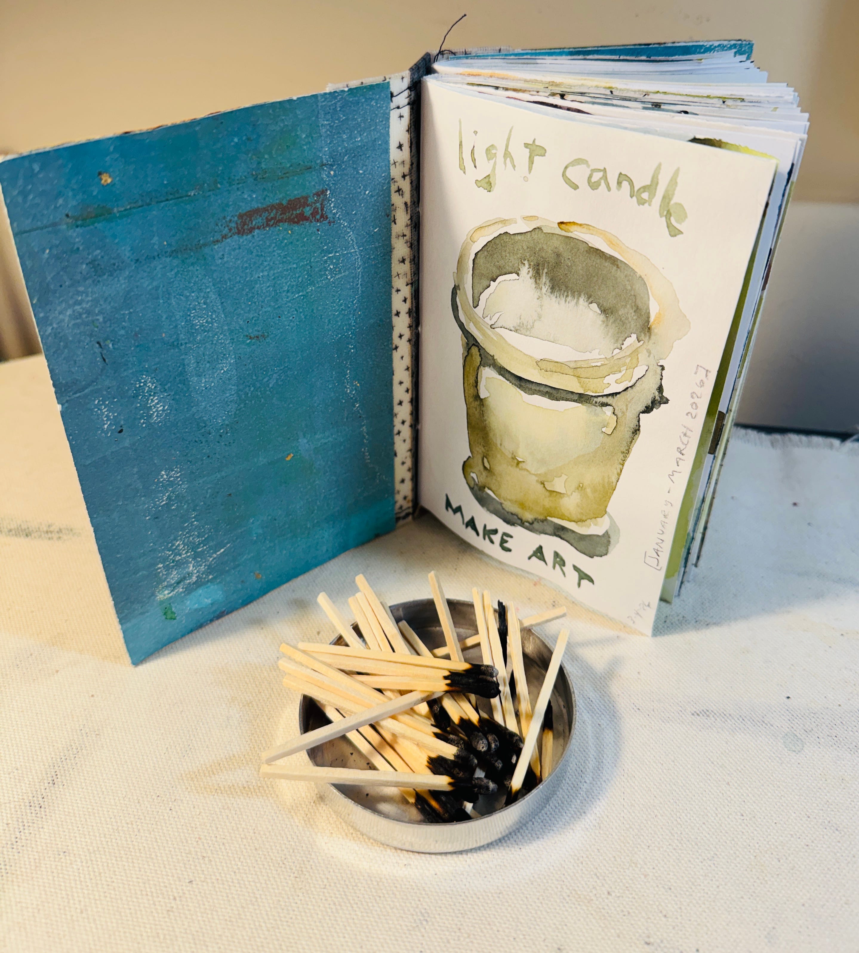 Oh, I also have a candle lid full of matches! Sometimes it overflows in a messy sort of way, but I'm okay with that, because each match is a morning I sat down in my chair to work. The candles are oddly essential. When I think, "Ugh, I don't want to work on the thing today," I remind myself, "Yes, but you get to light your yummy-smelling (espresso-scented actually) candle," which only gets lit when I'm doing creative writing. Not for grading or course prep or answering emails. The candle is special. The candle is both a signal and a reward.